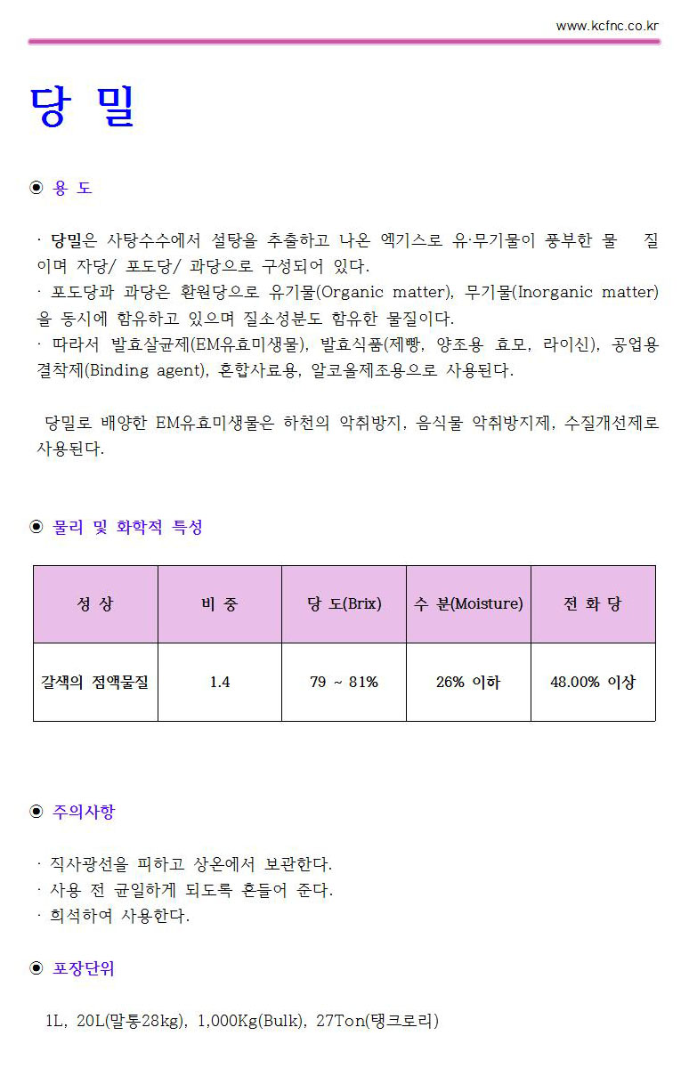 공업용 당밀, EM용 당밀 |